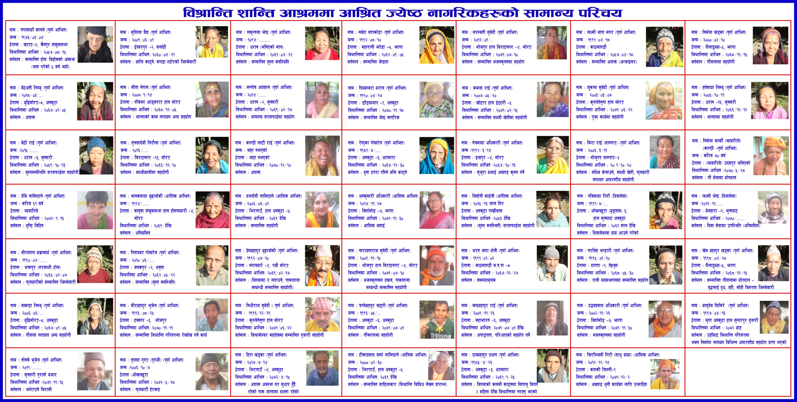 विश्रान्ति आश्रममा हालसम्म आश्रित जेष्ठ नागरिकहरुको नामावली